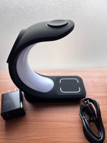 Works good, great to put on a nightstand next to your bed. You just drop everything on it and it works without issue. Cool how it holds the phone at an angle. Charging speeds with all 3 wireless spots used at once is still fast enough for wireless.